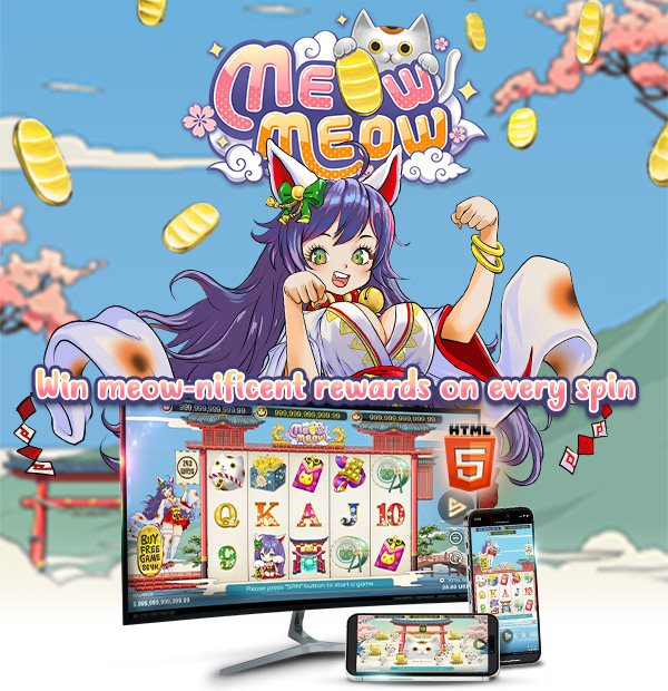 “Meow Meow” is a 3x5 reel, 243-way slot. It supports a Free Game Feature, where Free Games are triggered by collecting three cat-shrine symbols, or simply by clicking the “Buy Free Game” button. After entering a shrine with multiple fortune cats, players unveil golden fortune cats to get a maximum of 20 free spins! During free spins, the Wild Bonus Feature is applied, where each Wild Symbol can win up to 20 times of total bet! Step into the world of “Meow Meow” for great fortunes now!